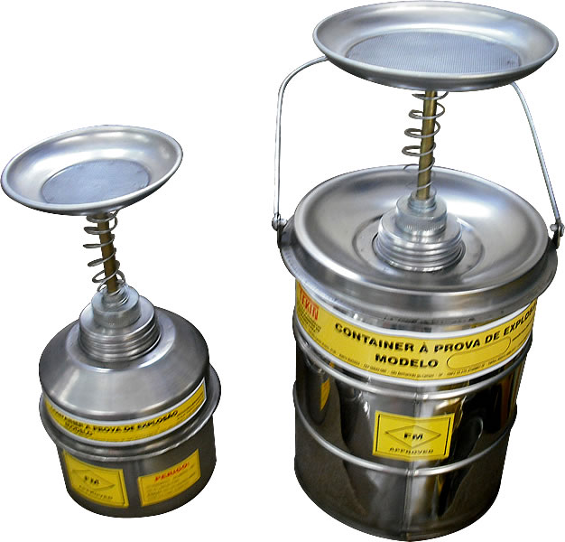 Utilização de líquidos inflamáveis para saturação de panos, limpeza de pincéis e de peças, através de mergulho no líquido é equipado com sistema corta-chamas e anti-explosão, possui tampa que auxilia a não propagação do fogo em caso de incêndio e minimizando assim a evaporação dos líquidos e facilitando o manuseio.