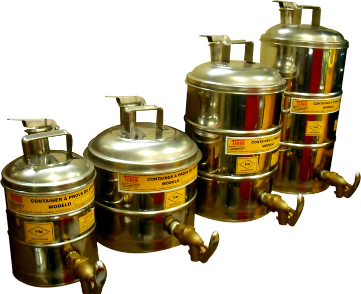 Container de segurança e ou recipientes de segurança e a prova de explosão são destinados ao manuseio de líquidos inflamáveis , combustíveis em geral .São construídos em aço inox AISI 304. Ideal para armazenagem, transporte e transferência e ou descarte em geral. São itens fundamentais para o trabalho com líquidos perigosos com segurança e de acordo com as normas regulamentadoras.