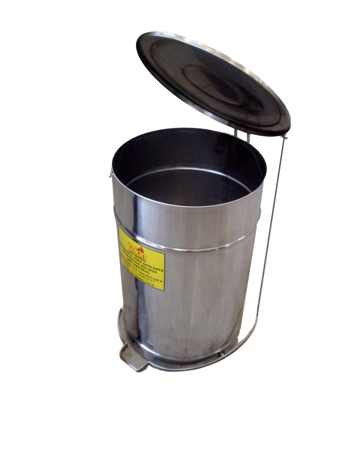 É fabricado em aço inox AISI 304, polido em cor natural e ou aço carbono com pintura eletrostática vermelho possui tampa acionada por pedal com fechamento automático, para abri-la basta pisar no pedal e para fecha-la basta o soltar , pois sua tampa é de retorno automático.